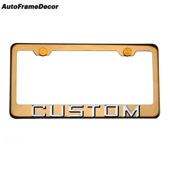 - 3D chrome Anti-Rust Metal decal Letters (not plastic) the lettering need to install to the frame by yourself Need to clean the frame surface before using the double side adhesive that is already attached to the lettering.
